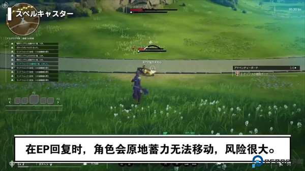 释放魔法攻击会消耗EP,连续施法后EP迅速见底,需通过长按鼠标右键进行恢复。恢复时魔法使必须静止不动,面临一定风险。