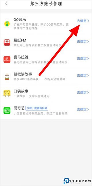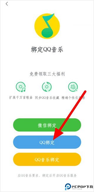 4、进入绑定页面,点击QQ绑定/QQ音乐绑定;