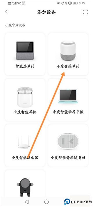 1、打开软件后,点击添加设备;2、选择设备,例如小度音响系列;