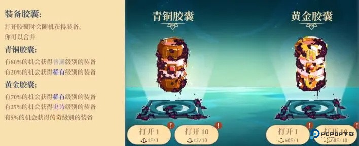 3.青铜胶囊和黄金胶囊开出的装备品质差距相当明显。