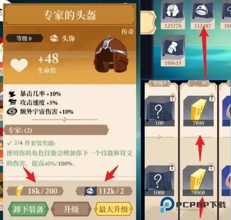 2.拿到手的装备可以进一步合成或升级:在铁匠安德烈处可用 3 件装备合成 1 件更高阶的装备;升级装备则要消耗特定部位图纸及碎片材料。