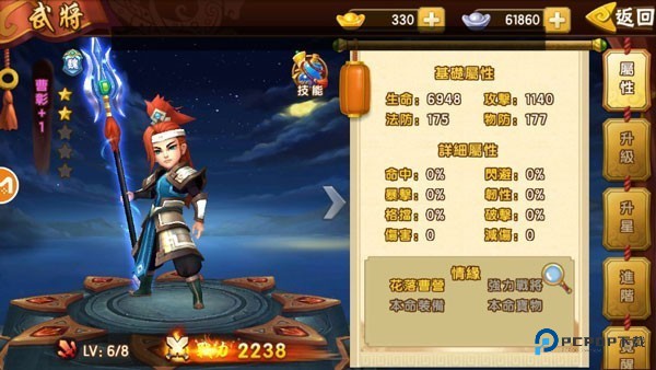 3、进入武将属性界面