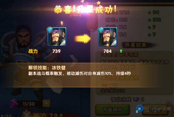 成功后将立即提升武将属性
