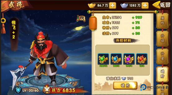 升级:消耗丹药提升武将等级