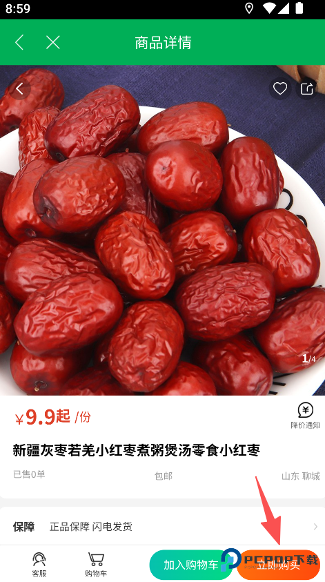 3、进入商品详情页,点击立即购买按钮。