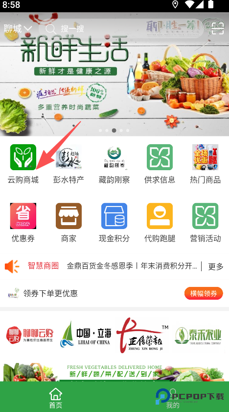 1、打开云购聊胜一筹首页,点击云购商城选项。