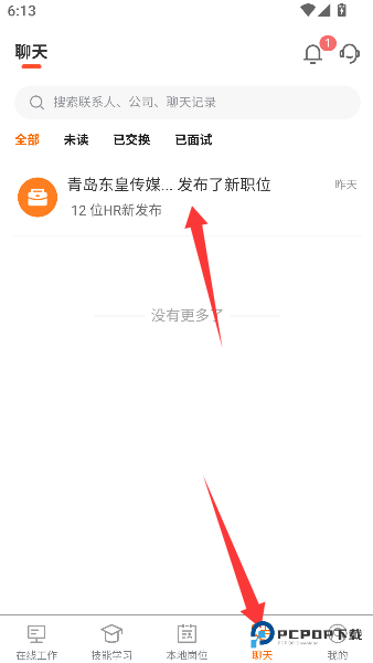 1、点击首页底部的聊天图标,就像走进一个热闹的招聘会现场,新鲜发布的职位清单立刻跃然眼前。