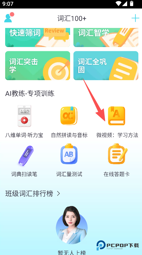 2、支持微视频学习功能,选择目标视频,观看词汇学习方法,推进词汇学习的辅助流程。