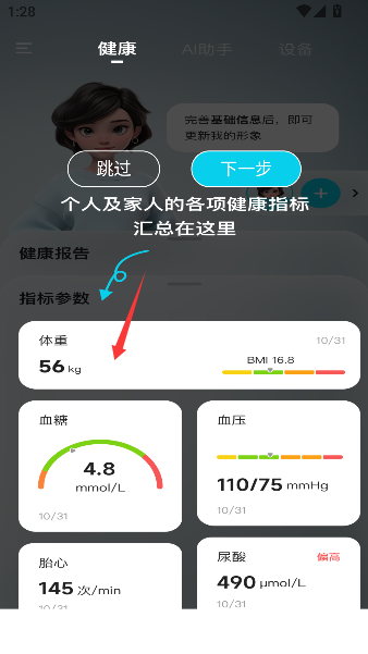 1、全面的健康指标记录体系,支持手动录入与设备自动导入多种身体测量数据。