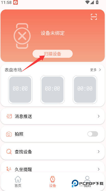 1、在首页找到并轻触底部导航栏的“设备”选项,进入设备管理界面。