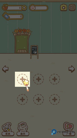 进入游戏后,第一步需要为顾客准备舒适的环境。看!点击屏幕右下角的那个家具店按钮就能打开商店啦。在商店里选些喜欢的家具购买,比如给猫咪顾客使用的舒适垫子。
