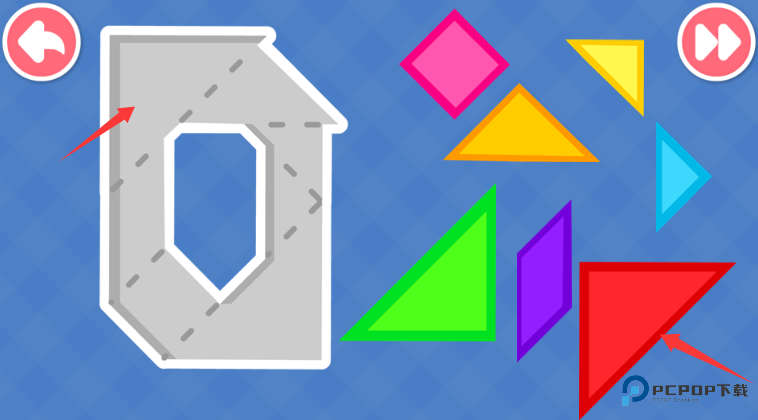 2、孩子需要观察屏幕上的形状,并用手指将这些形状拖拽到画面中对应的轮廓位置,当所有形状正确归位后即可完成拼图。