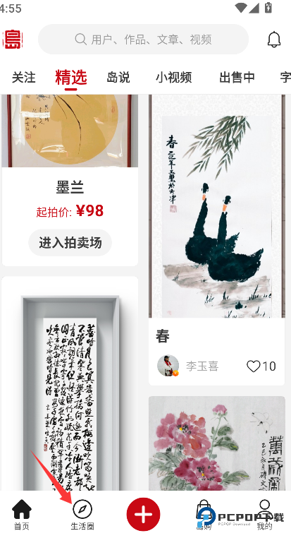 2、点击"朋友圈"分类选项,即可查看平台内其他成员分享的书画作品及相关动态。