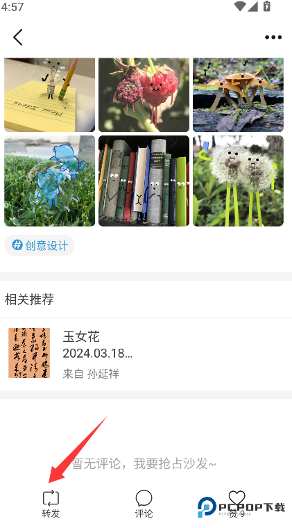 3、在浏览朋友圈内容时,遇到欣赏的作品,可点击作品下方的转发功能按钮。