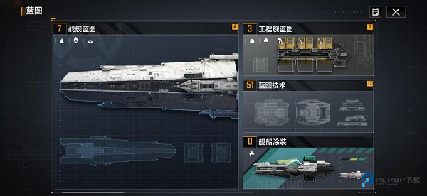 游戏初始阶段自动解锁蓝图系统。在蓝图研发界面内,可以看到至少两个技术研究区域,这里用于解析获取到的技术档案,从而研发工程舰或主力舰的蓝图。