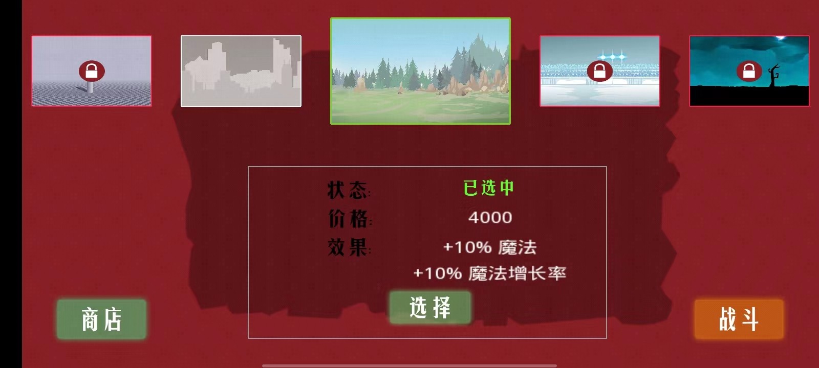 5、玩家还可以进入商店,这里可以对体力、魔法、暴击率等进行升级;也可以解锁火柴人的攻击姿势、魔法、辅助以及高级功能;