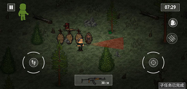 建议选择森林地图,这个地图范围大,可以很好的躲避ai,并且可以让ai攻击你,让你受伤,从而使用IFAK急救包3次完成任务(只要距离ai一定距离,他们就不会追你)。