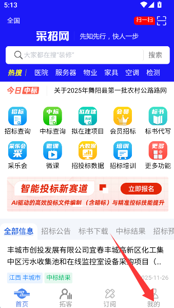 1、点击首页我的,如同走进招投标作战指挥室,各种项目动态与个人收藏正襟危坐等待检阅。