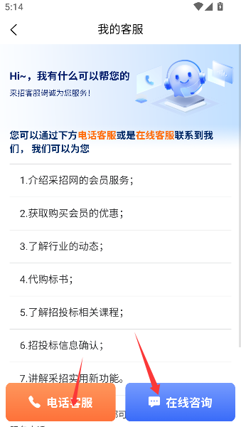 3、选择电话客服或在线咨询,仿佛在招标现场遇到岔路口,左边是沉稳的专家热线,右边是秒回消息的智能小秘书。