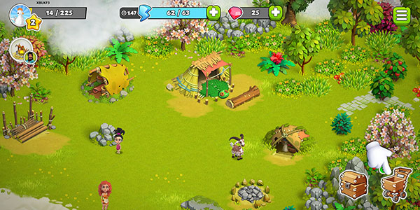玩家在家庭岛游戏中的首要目标,就是需要尽快帮助这一家四口在固定区域建设各类基础设施,因为在这个岛上生存并不容易,他们需要大量资源的补给。这些资源包括吃、住等各个方面,虽然吃的可以暂时靠岛上已有的各种野果暂缓燃眉之急,但这并不是长久之计。所以你还需要收集树木、杂草等材料搭建一个临时居所,并且收集一些种子进行种植、收获和烹饪,以确保您的日常需求。