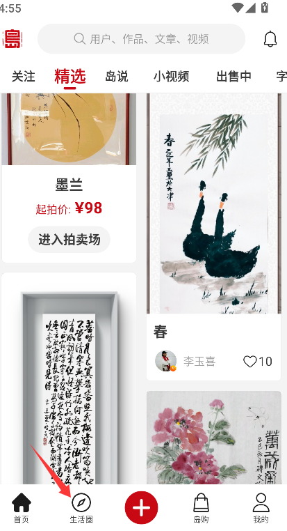 2、点击"朋友圈"分类选项,即可查看平台内其他成员分享的书画作品及相关动态。