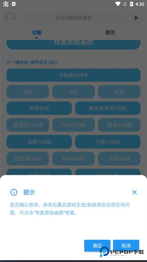 2、弹窗里点确定完成修改,别忘了重启游戏生效,画面立即变顺滑。