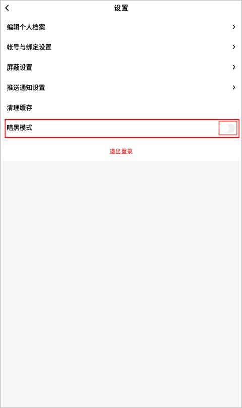 2、接着点击页面最下方的“暗黑模式”的开关就能设置了。