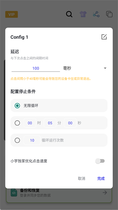 点击左侧的齿轮图标就可以自定义设置你的点击频率