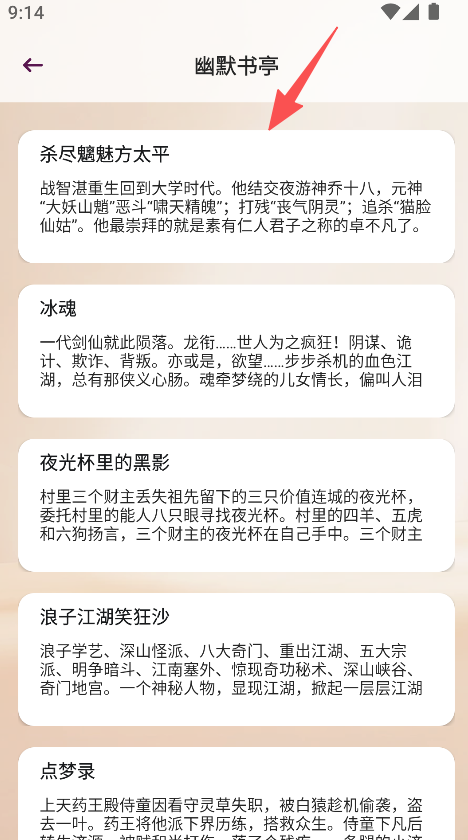1、书亭类别划分清晰,轻松、幽默等类别区分明显,可快速定位所需风格的读物,减少筛选时间,便于精准选择阅读内容。