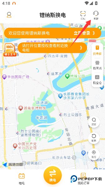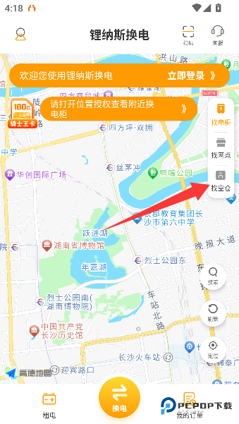 1、点击“找电柜”,如同展开一张能量补给站的藏宝图,地图上瞬间点亮了周围所有可换电的柜体位置。