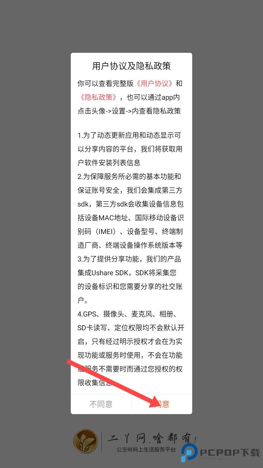 1、进入软件之后,会跳出服务协议,需要认真阅读软件给出的建议后点击同意并继续下一步。