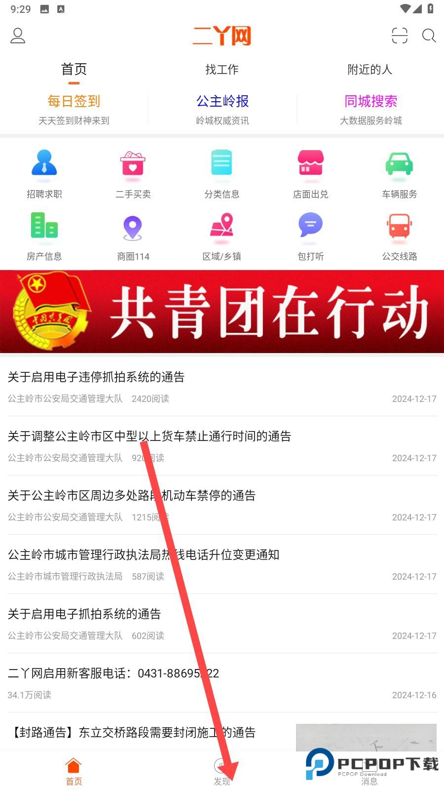 3、来到发现页面,可以看见有许多功能,跟随小编的箭头查看,点击招聘信息,即可查看您需要的信息了。