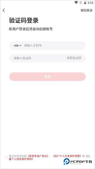 2、输入手机号,获取验证码,登录,新用户会自动注册