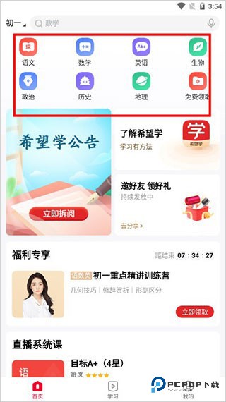 1、希望学app是一款中小学在线学科培训平台,平台拥有丰富的学习资源,资质安心,内容安心,品质安心,可以帮助学生更好的学习成长,欢迎前来下载使用。