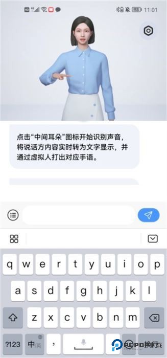 也可以点击耳朵旁边的键盘,输入文字可以将信息播报给对方。