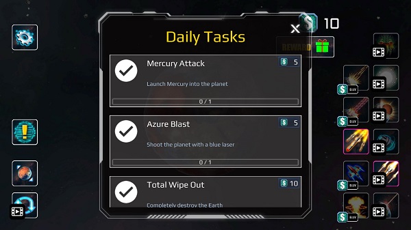 5、完成任务和成就并获得学分。用积分打开新型武器和行星。
