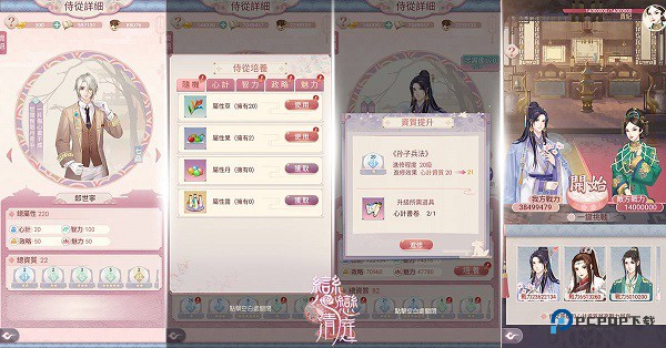 每个随从都有四种属性,其中有一项作为特长,特长在很多玩法中都起到了关键作用。随从的属性可以通过吃书、吃加成道具、累计忠诚度、升级知己技能以及特定随从的光环进行加成。随从的忠诚度可以通过寻访和宫务提高。若是小主得到了带有光环的随从,那么相同属性的随从也可以得到相应的属性提升喔!