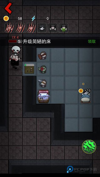 5、在睡觉的时候玩家们可产生金币,通过金币玩家们可升级门、床、以及装备武器;
