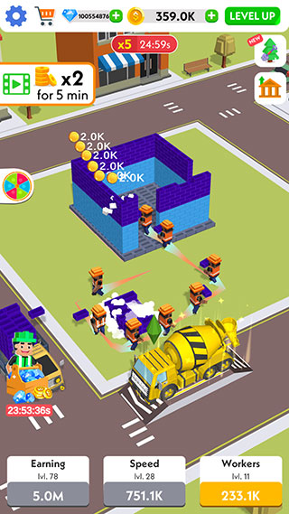 建筑大亨3d是一款卡通风格的放置类游戏,玩家可以在游戏中打造你的建筑帝国,建筑各种特色性的建筑,注意要合理的使用各种材料,不要浪费。建筑大亨3d还可以通过赚取的收益来扩张更大的领土,建筑房屋大楼能够让更多的顾客居住,超多具有挑战性的任务等待你来完成,还可以解锁更多专业性的团队,建造难度更大的建筑物,提升建筑速度。