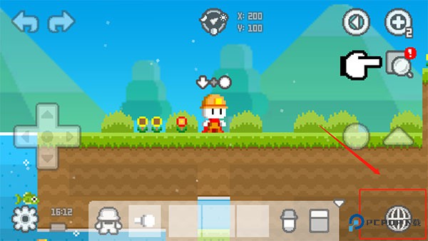 3、然后在游戏正式环节中,需要联机的朋友点击页面右下角的地球标识