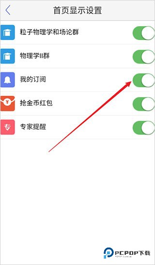 4、在首页显示设置页面,点开我的订阅开关。见下图