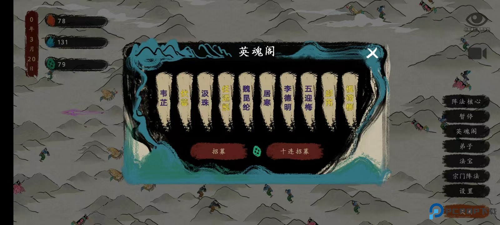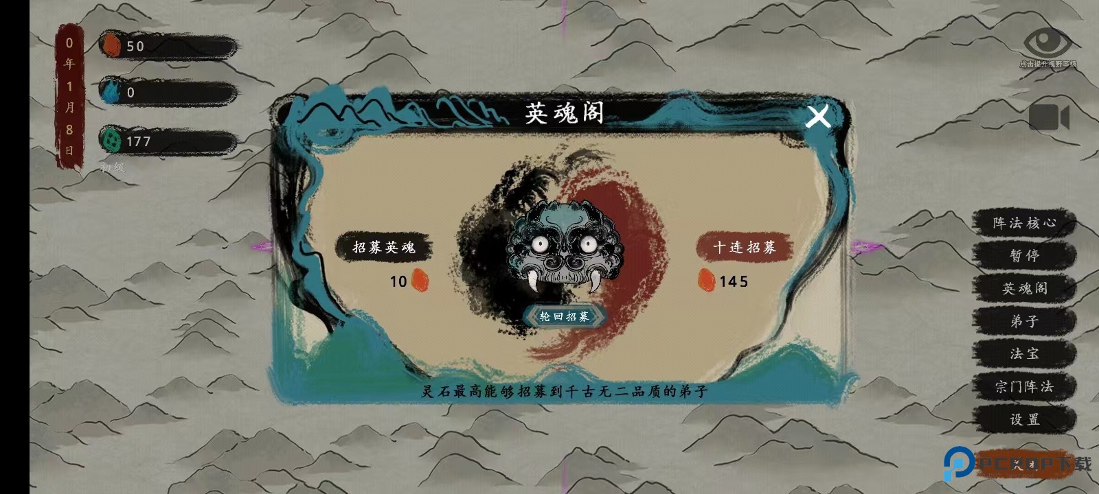 5、教程结束以后,玩家就可以招募弟子了,点击右边的【英魂阁】,之后再点击【招募】;
