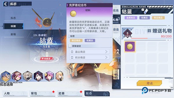 赠送技巧:根据角色喜好选择礼物类型(如钴蓝偏好 "克罗恩纪念币"),喜爱礼物可提升3 倍唤醒值。