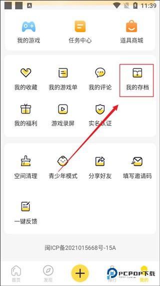 2、选择【我的存档】选项。