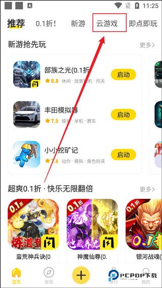 1、首先,在主页面找到并点击【云游戏】选项。