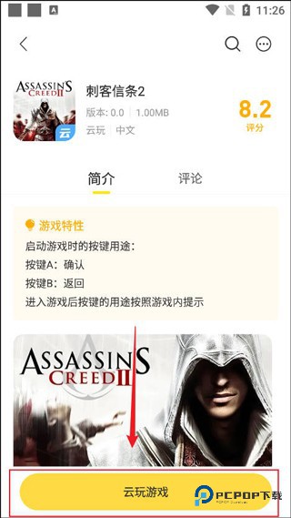 2、进入云游戏模块后,挑选你喜欢的游戏,比如选择【刺客信条】。