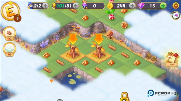 2、把木头合并,得到小木屋,再把小木屋合并,建成木头豪宅。