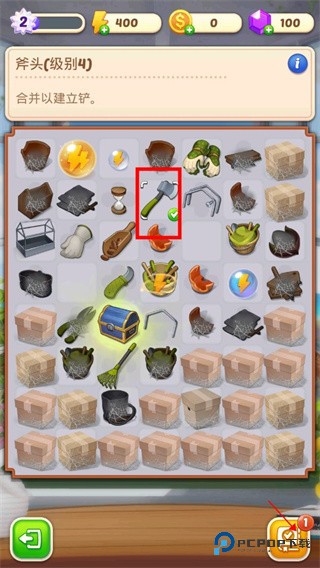 3、找了一圈,直接可用的斧头可能没有。不过,没关系!打开你的工具列表,把两个级别相同、模样完全一样的低级工具拖到一起就能合成了。看,一把崭新的斧头就是这么变出来的。