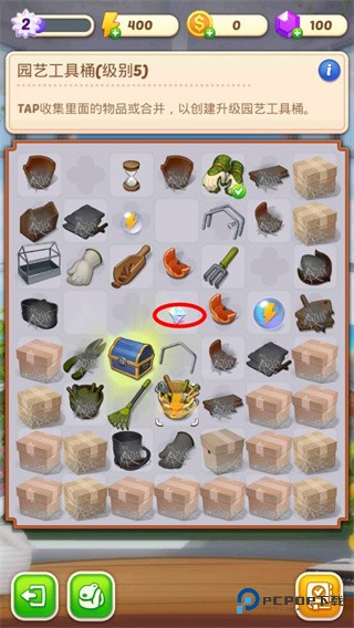 这里最有意思的就是把相同的东西合在一块儿了。你需要在庄园里找到外形、等级一样的东西,把它们凑起来,然后 “咻” 的一下,它就变成了更高级的玩意儿。比如把几朵一级的小花合并,就能得到一朵更大更漂亮的二级花。
