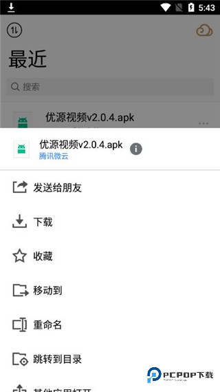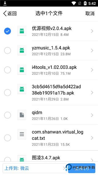 2、登录应用程序后,你可以从设备上选择文件上传到微云。它支持多种文件类型。选择要下载的文件(允许多个选择),然后点击“下载”将文件下载到您的设备。